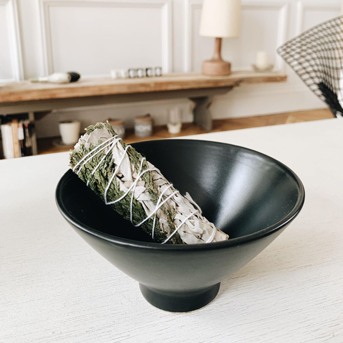 Pour éteindre complètement le bâton, écraser le bout en braise au fond de votre support et s’assurer qu’il est bien éteint avant de le ranger. De plus, il est très important d’aérer pendant et après le rituel.
