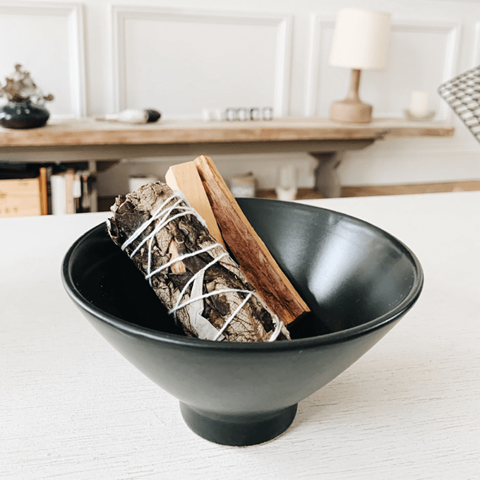 Pour éteindre complètement le bâton, écraser le bout en braise au fond de votre support et s’assurer qu’il est bien éteint avant de le ranger. De plus, il est très important d’aérer pendant et après le rituel.